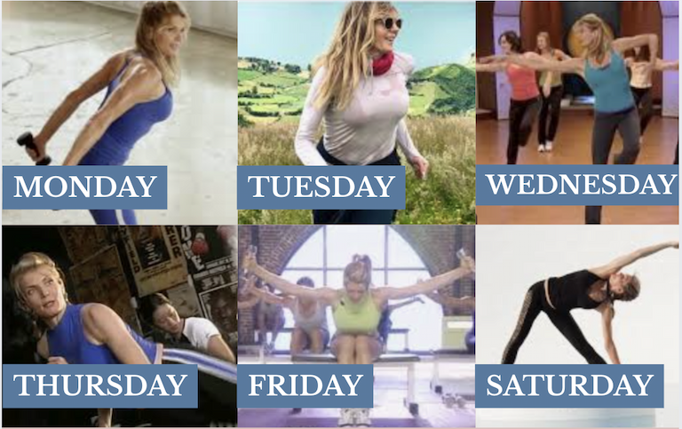 3 days a week → sculpt with weights, Pilates, and body-toning moves